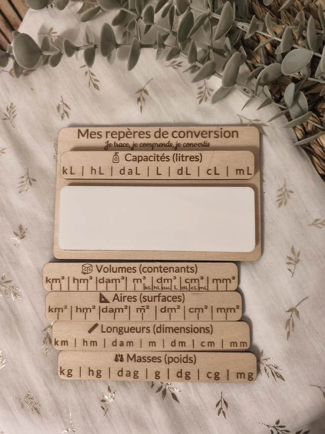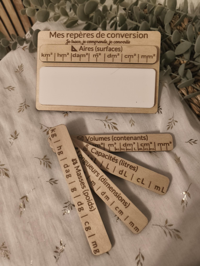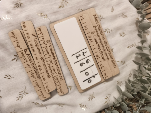 Support pédagogique en bois pour aider les enfants à comprendre les conversions de mesures ✏️