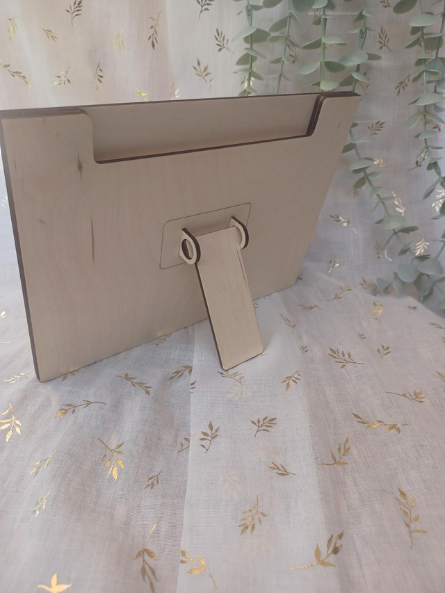 Son format permet d'insérer facilement une photo standard 10 x 15 cm. Fabriqué en bois naturel, ce cadre peut se poser grâce à son pied intégré et devient un cadeau parfait pour les mariés, les invités ou en décoration de salle.