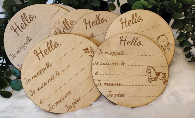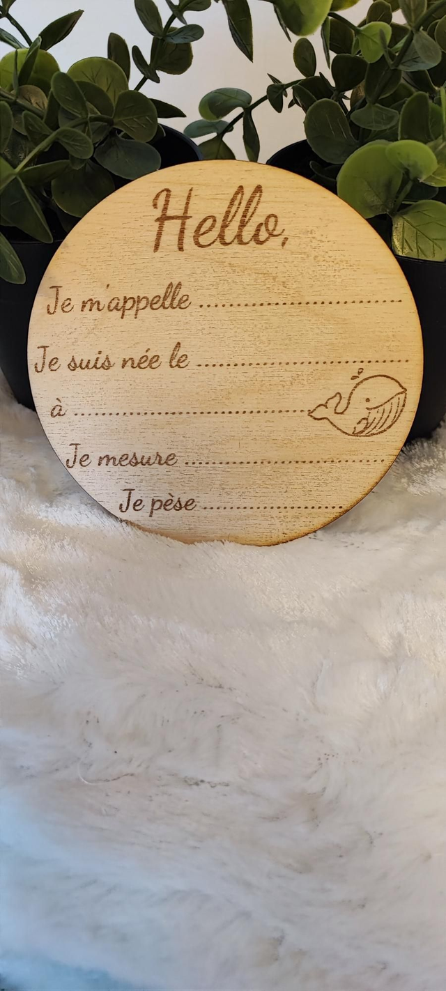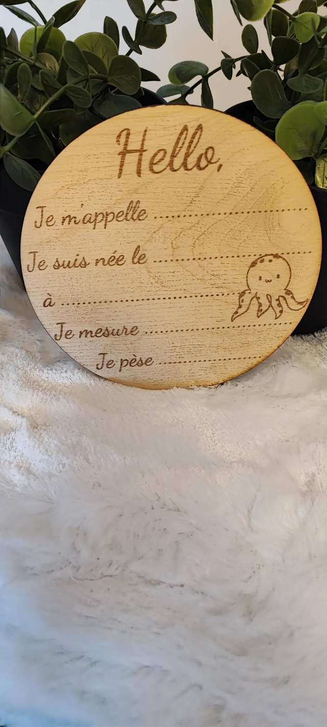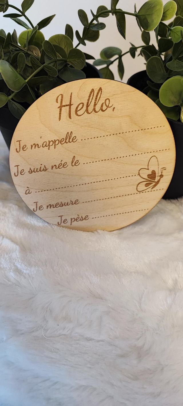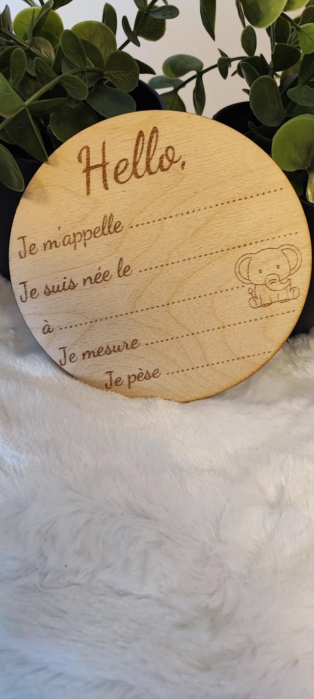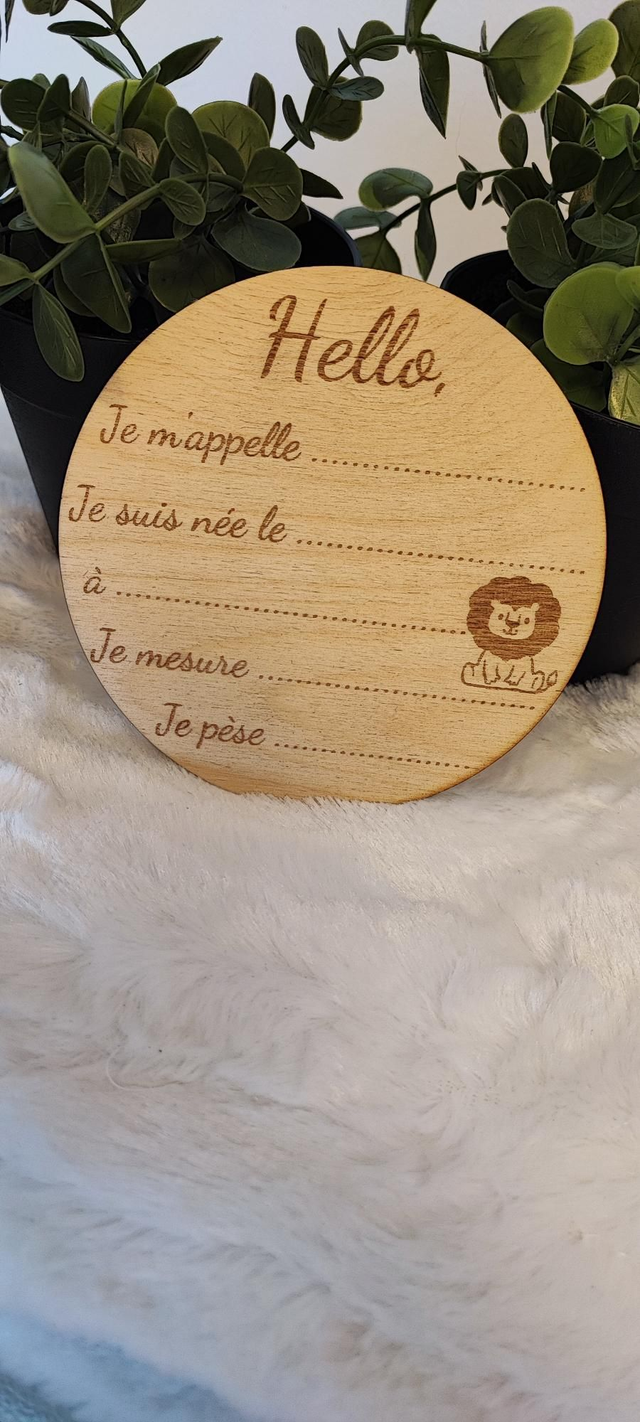 Accueillez bébé et capturez ses premiers moments avec ce charmant disque de naissance en bois de bambou. Gravé avec soin, il offre des espaces dédiés pour noter son prénom, sa date et heure de naissance, sa taille et son poids.