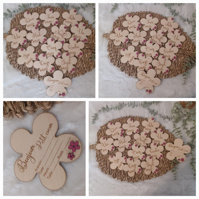 Créez des souvenirs inoubliables de la première année de votre petit trésor avec ce suivi de naissance unique et personnalisé.
