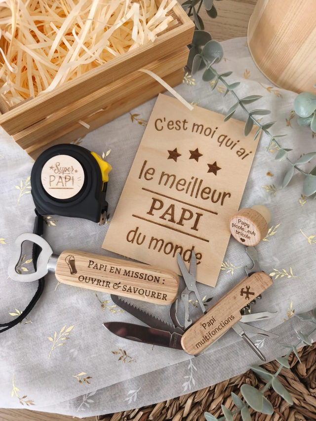Coffret “Meilleur Papy du monde” – Carte bois & accessoires utiles