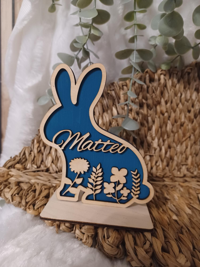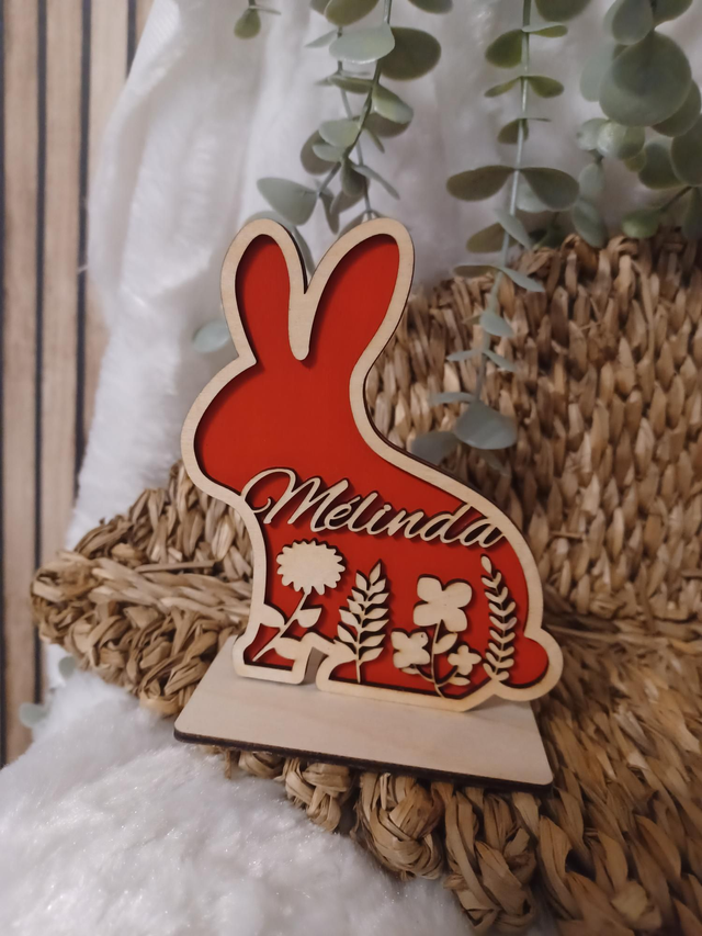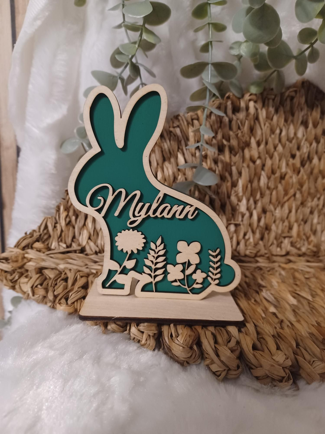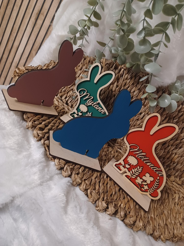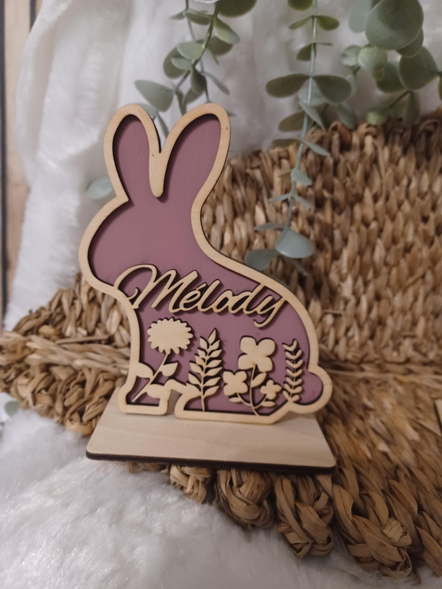 Découvrez les mignons p'tits lapins, découpés avec soin et ornés de motifs floraux délicats. Chaque lapin est unique, personnalisé avec le prénom de votre choix. Parfaits pour une décoration de table festive, une chambre d'enfant ou une touche printanière dans votre salon, ils apporteront une note chaleureuse et originale à votre interieur