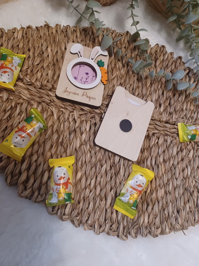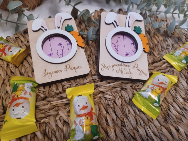 Un petit lapin tout mignon orne ce magnet, avec une découpe spéciale pour insérer votre photo préférée.