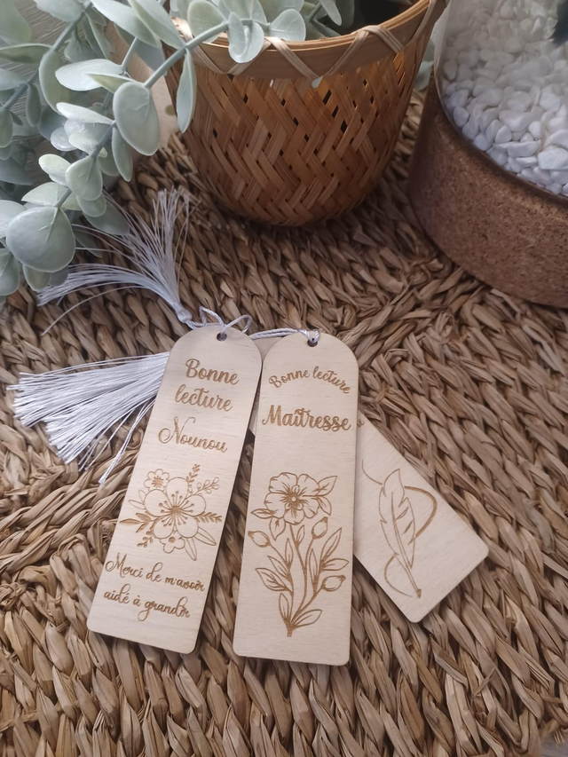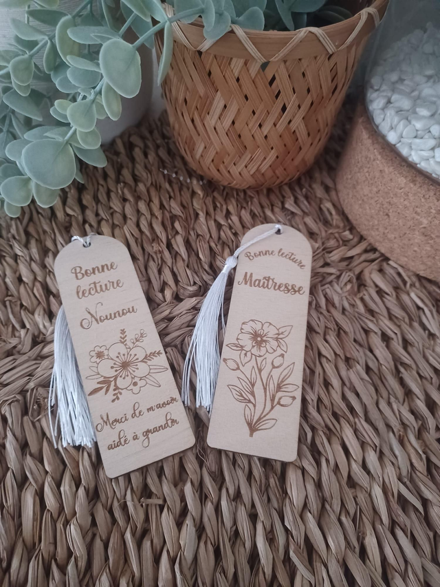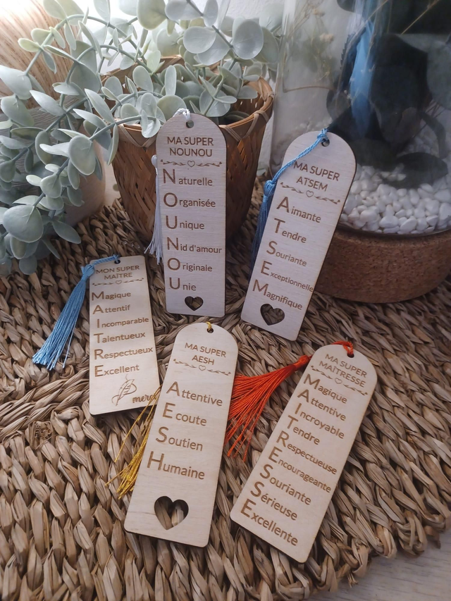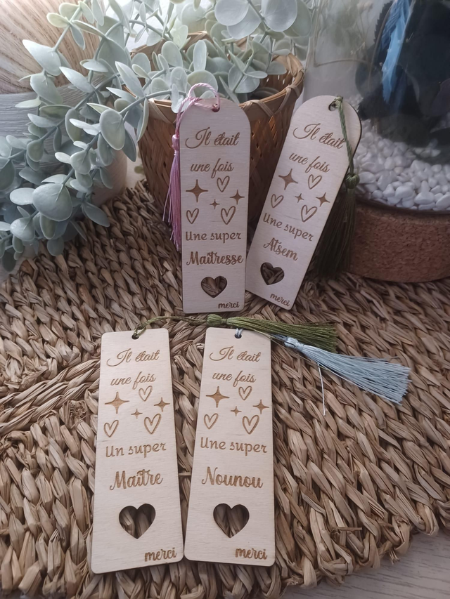 Offrez un cadeau unique et touchant pour la fin d année scolaire avec ce charmant marque-page en bois gravé.