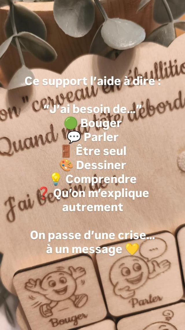 Ce support aide l’enfant à exprimer simplement ce qu’il vit intérieurement et à dire : “J’ai besoin de…”