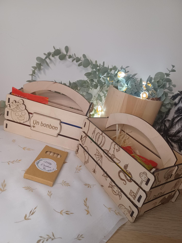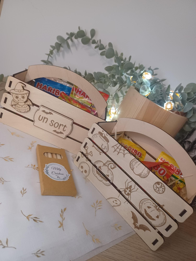 🎃 Offrez à vos enfants un Halloween unique avec ces jolis paniers en bois gravés !