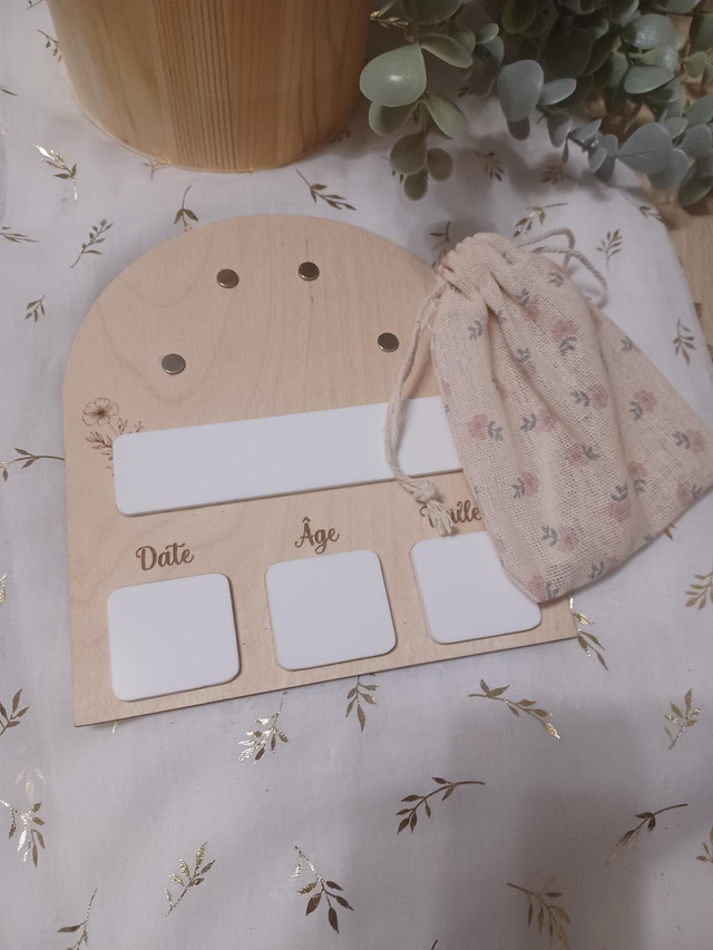 tout en affichant le prénom de l’enfant grâce à des pièces magnétiques interchangeables.