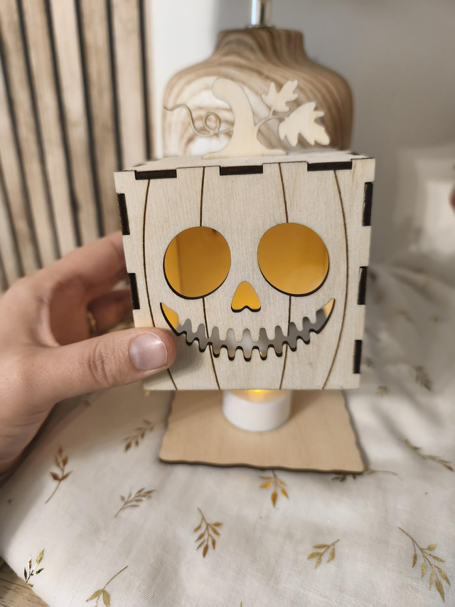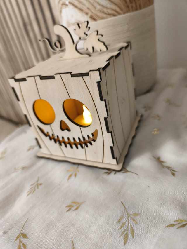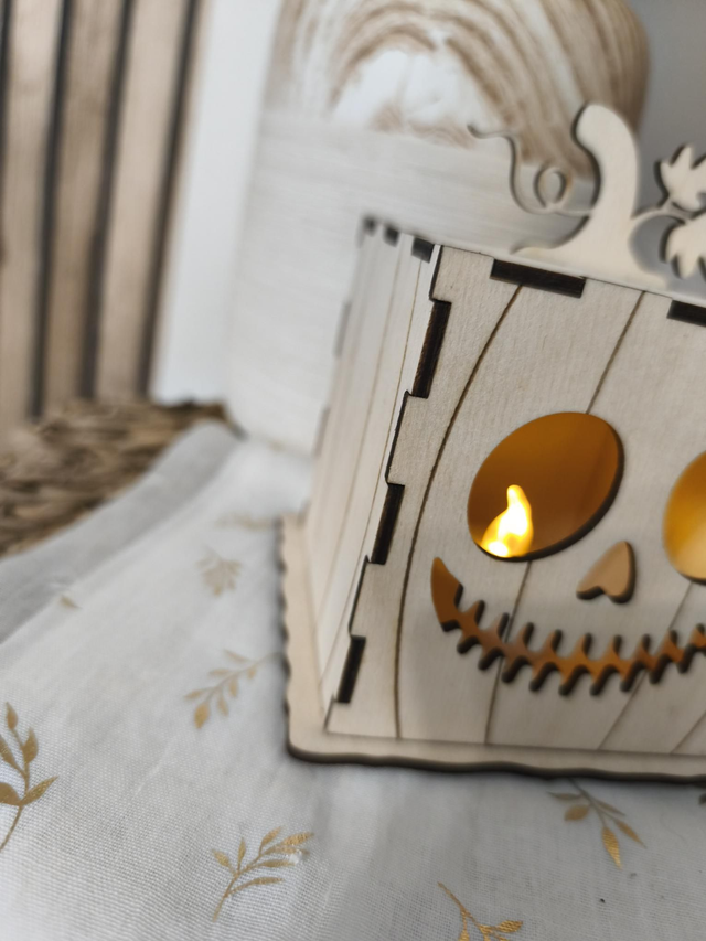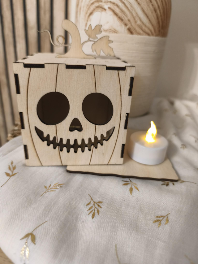 Photophore citrouille en bois – Halloween magique 🎃