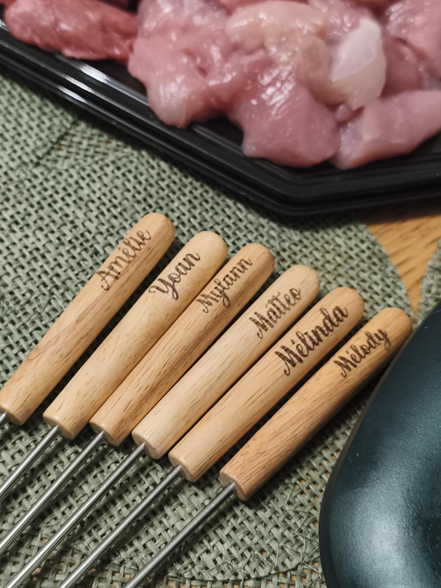 Pic à fondue personnalisé – Manche en bois gravé