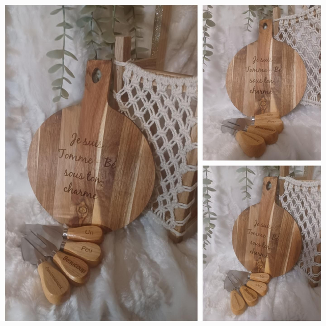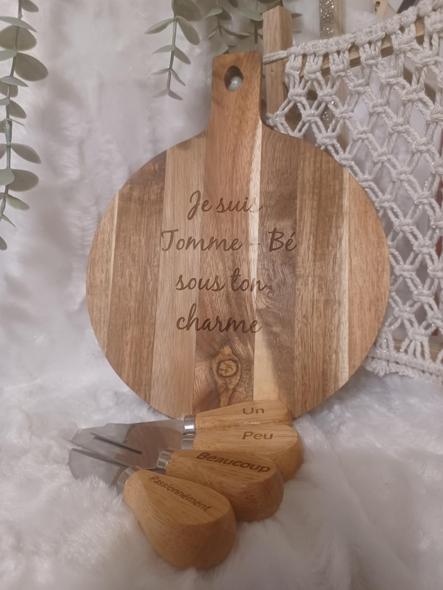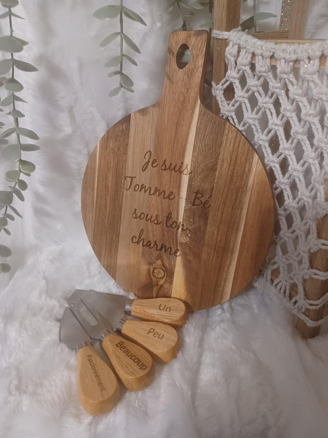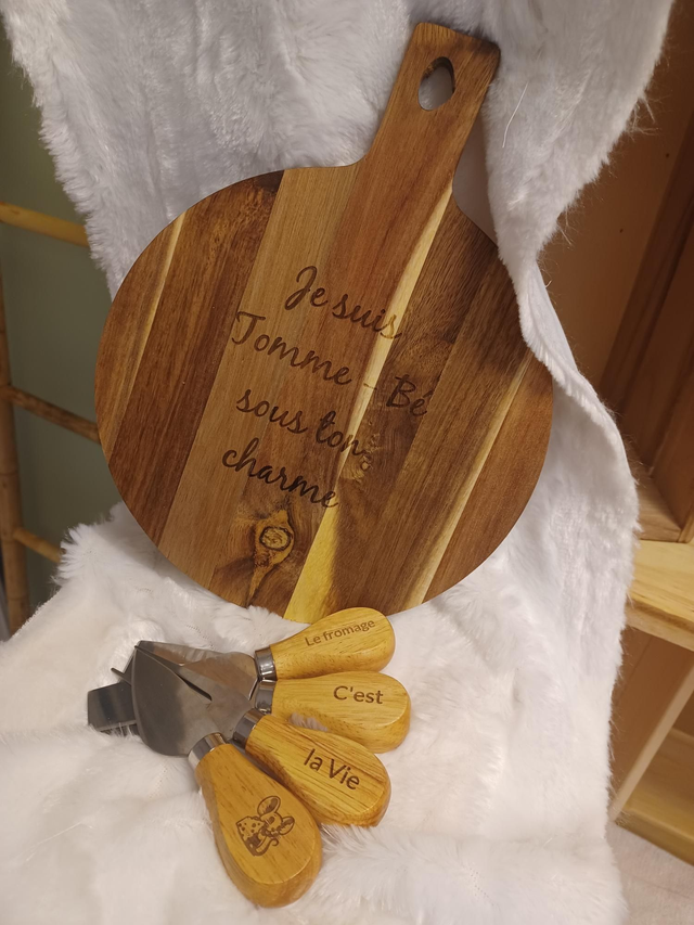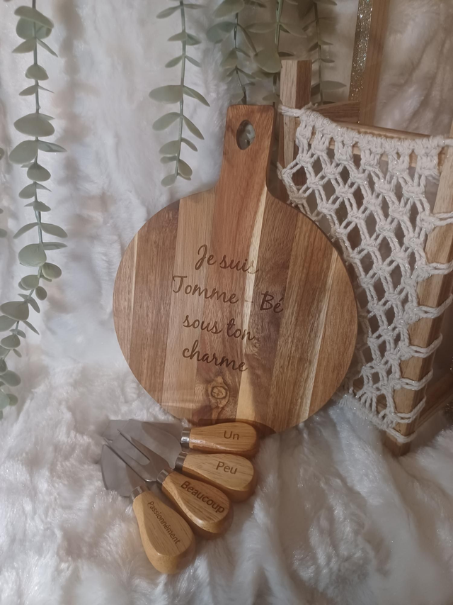 Vous cherchez le cadeau idéal pour un amateur de fromage ? Alors, ne cherchez plus. Offrez une planche à découper personnalisée en acacia avec ses couteaux à fromage.