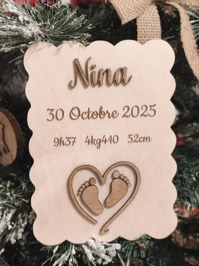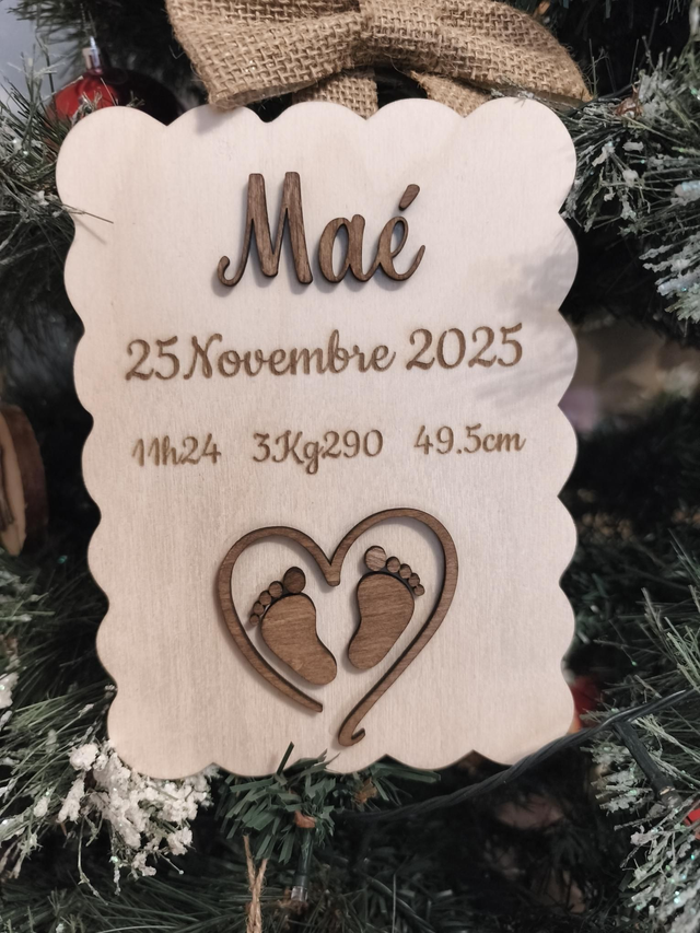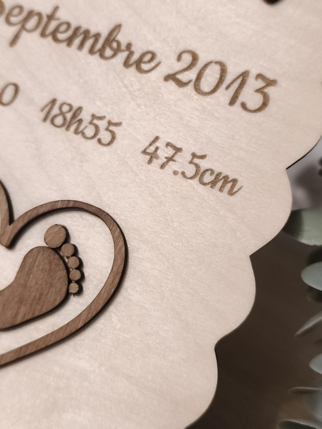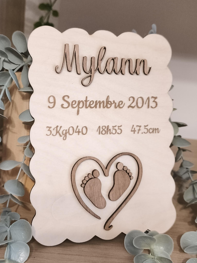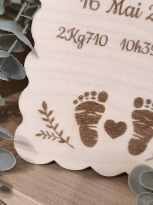 Offrez un souvenir précieux et intemporel avec cette plaque de naissance personnalisée, réalisée en bois et gravée avec délicatesse 🌿