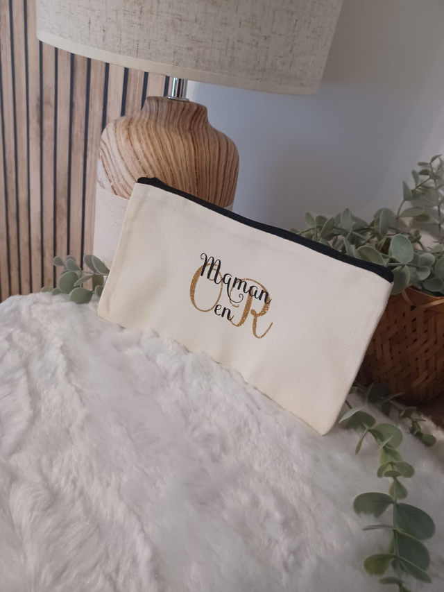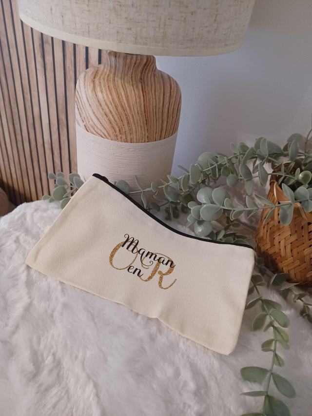 Pochette personnalisée en tissu zippée – “… en Or” 💛 Cadeau unique