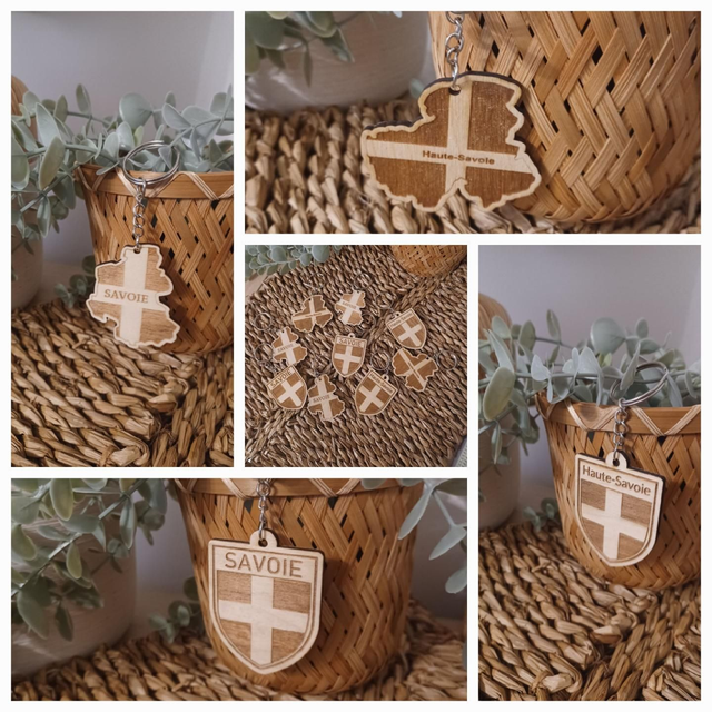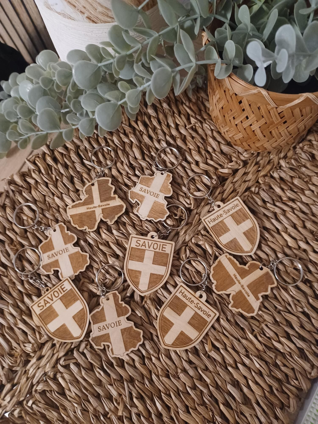 Emmenez un petit morceau de votre région préférée partout avec vous! Nos porte-clés en bois gravés, représentant la Savoie et de la Haute-Savoie ou leurs blasons emblématiques, sont l'accessoire parfait pour les amoureux de nos belles montagnes. Faits avec soin, ils sont le cadeau idéal à s'offrir ou à offrir.