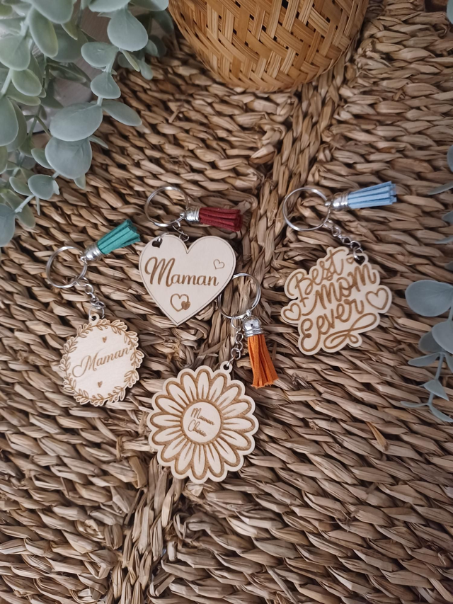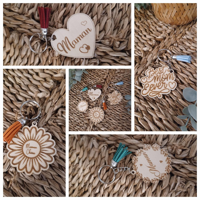Découvrez notre adorable collection de porte-clés en bois, spécialement conçus pour célébrer la fête des mères ! Chaque pièce est délicatement gravée avec des messages touchants et des motifs floraux, symboles d'amour et de gratitude. Ces porte-clés sont le cadeau idéal pour accompagner votre maman au quotidien, lui rappelant votre affection à chaque instant
