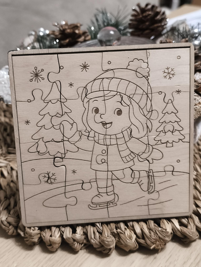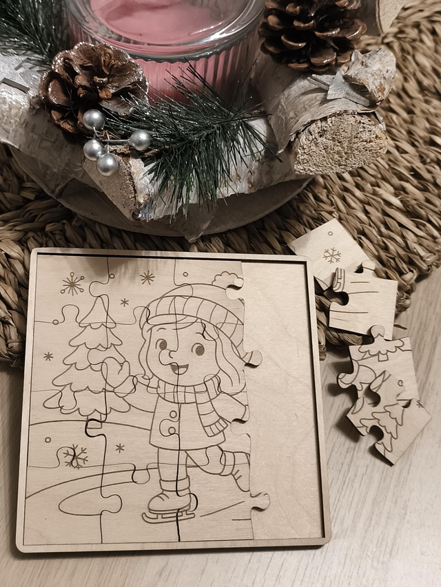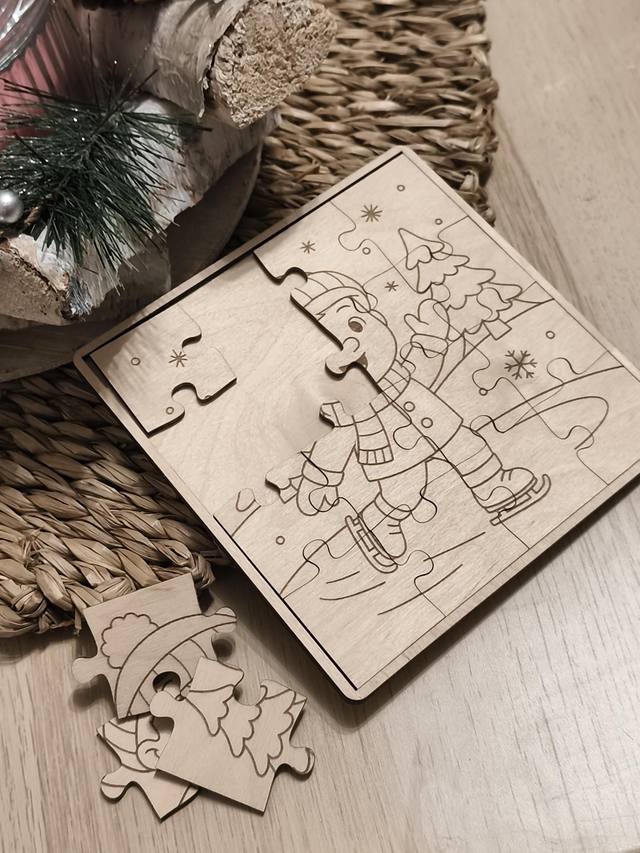 Puzzle à colorier en bois – Thème hivernal ❄️