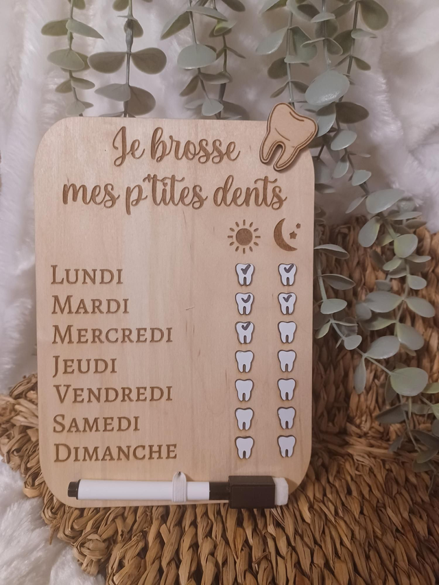 Conçu spécialement pour les enfants, ce tableau en bois est l'outil parfait pour encourager une bonne hygiène dentaire tout en s'amusant.