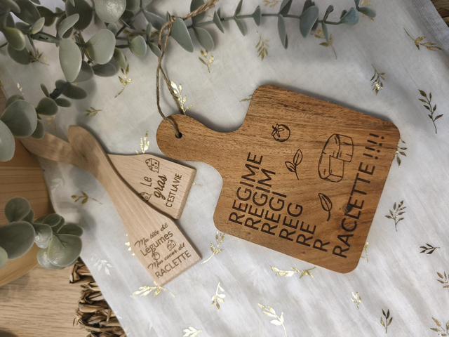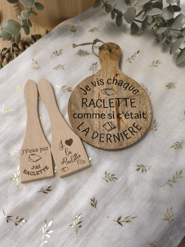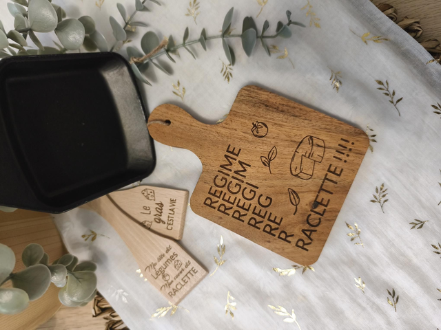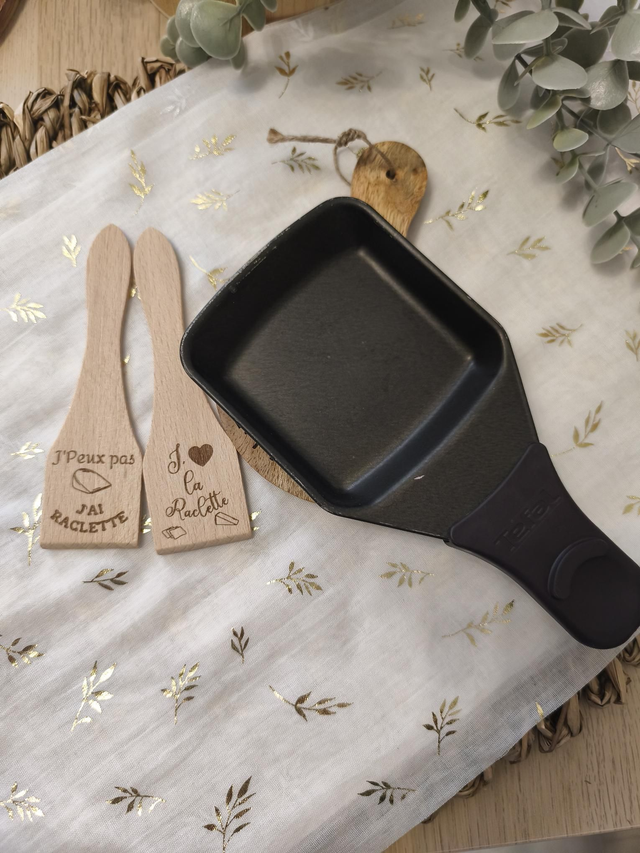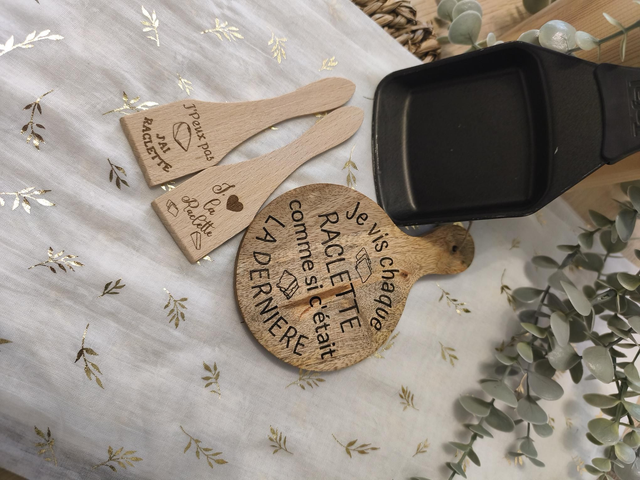 Ajoutez une touche unique et conviviale à votre table ou à vos cadeaux clients avec ce set raclette personnalisable 🧀✨.