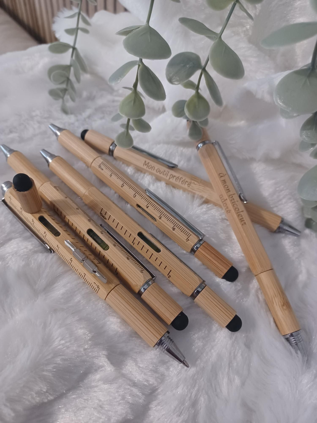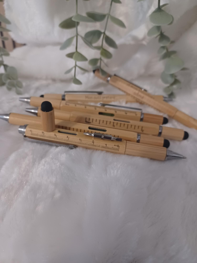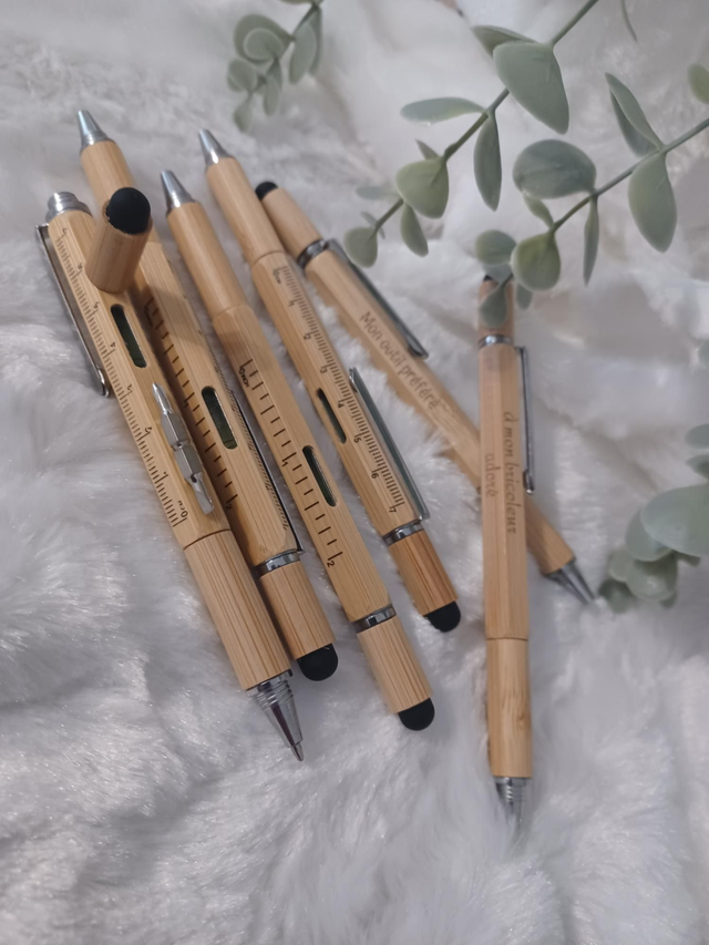 Découvrez ce stylo multifonction en bambou, un outil à la fois écologique et incroyablement pratique. Fabriqué à partir de bambou durable, ce stylo est un choix respectueux de l'environnement.