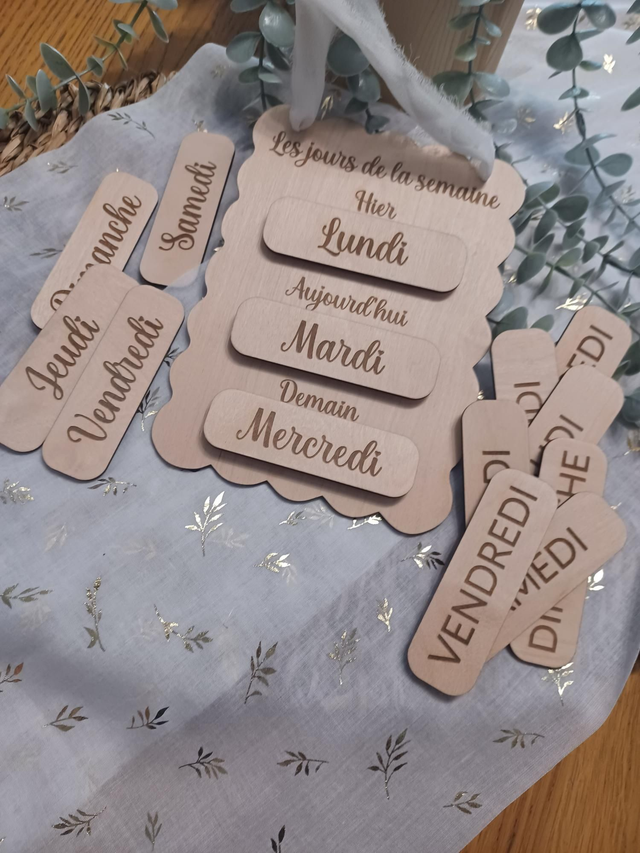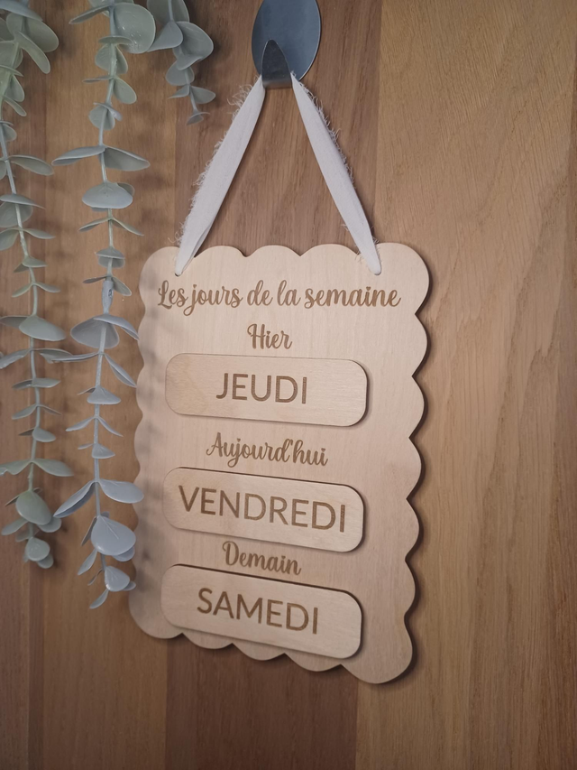 Tableau en bois des jours – Rituel quotidien & repères temporels