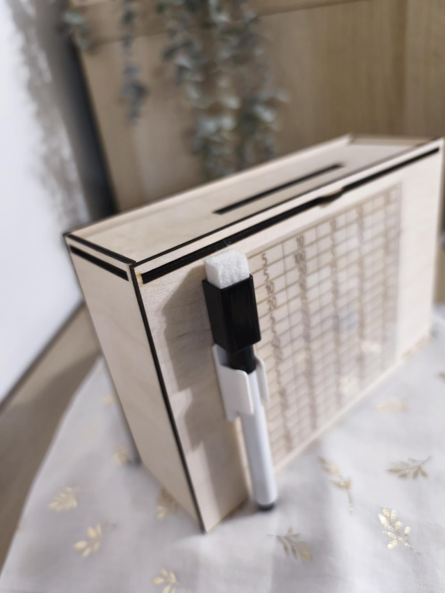 Tirelire en bois avec tableau d’épargne – Personnalisable