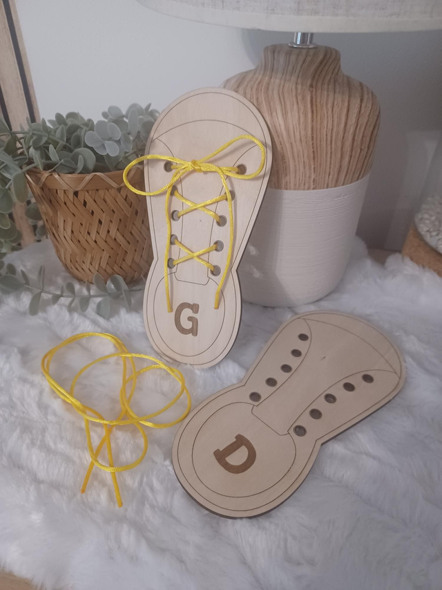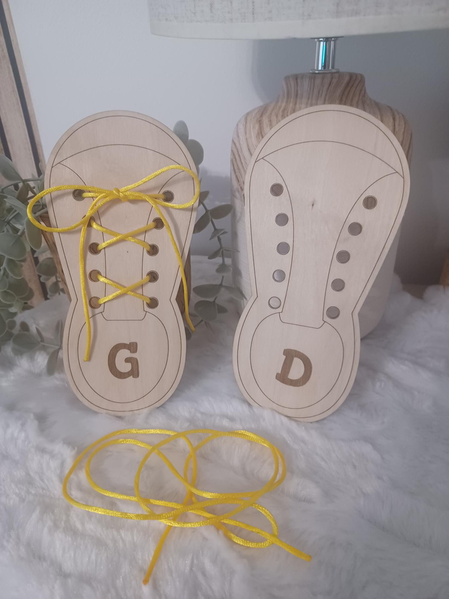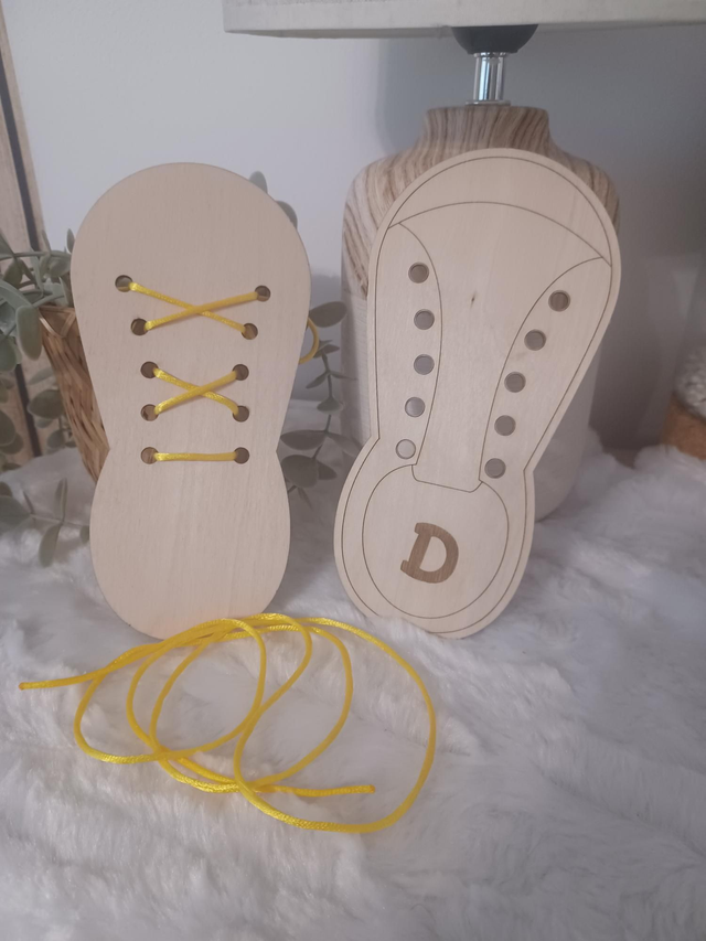 Une façon ludique et éducative d'apprendre à lacer ses chaussures avec notre jeu d'apprentissage en bois de bouleau inspiré par la pédagogie Montessori.