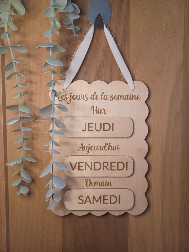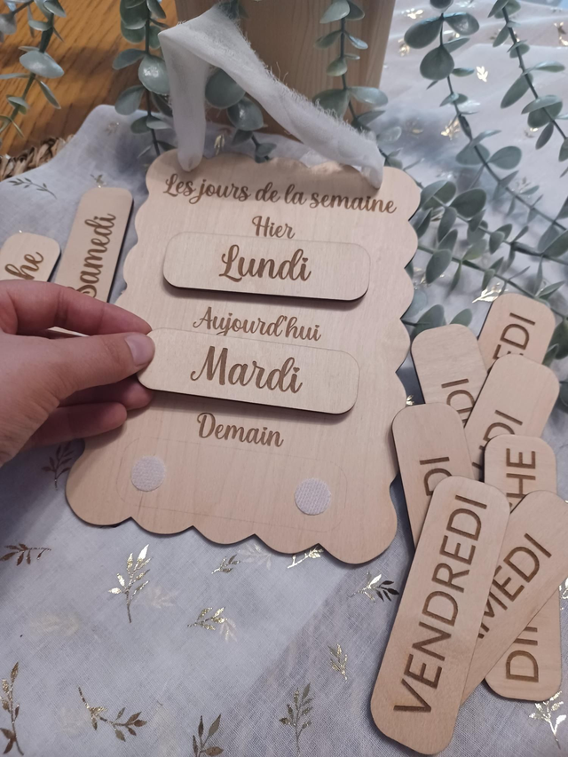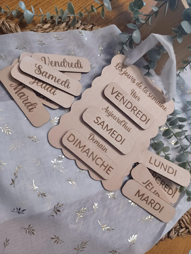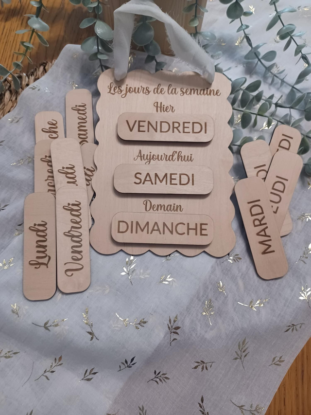 Tableau pédagogique en bois – Repérage temporel & apprentissage des jours